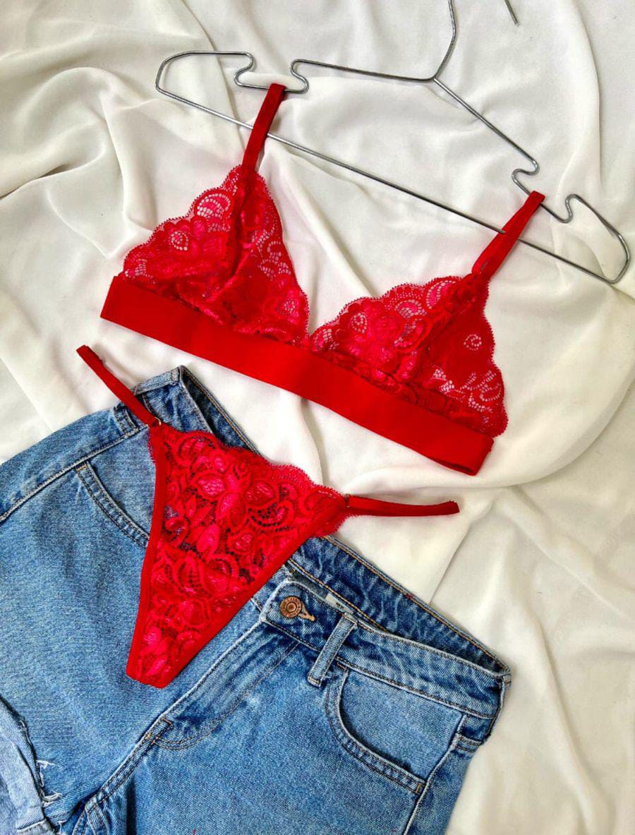 Set Vera, un conjunto lleno de detalles, bralette de copa encaje sin forro, base de 3,5 centímetros de meter por encima. Brasilera Regulable